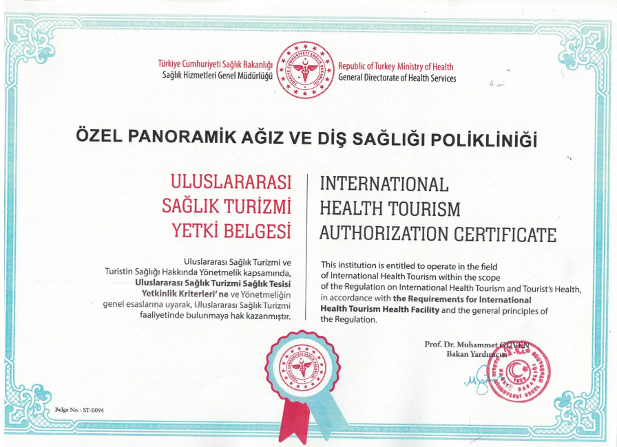 İNTERNATİONAL HEALTH TOURİSM AUTHORİZATİON CERTİFİCATE